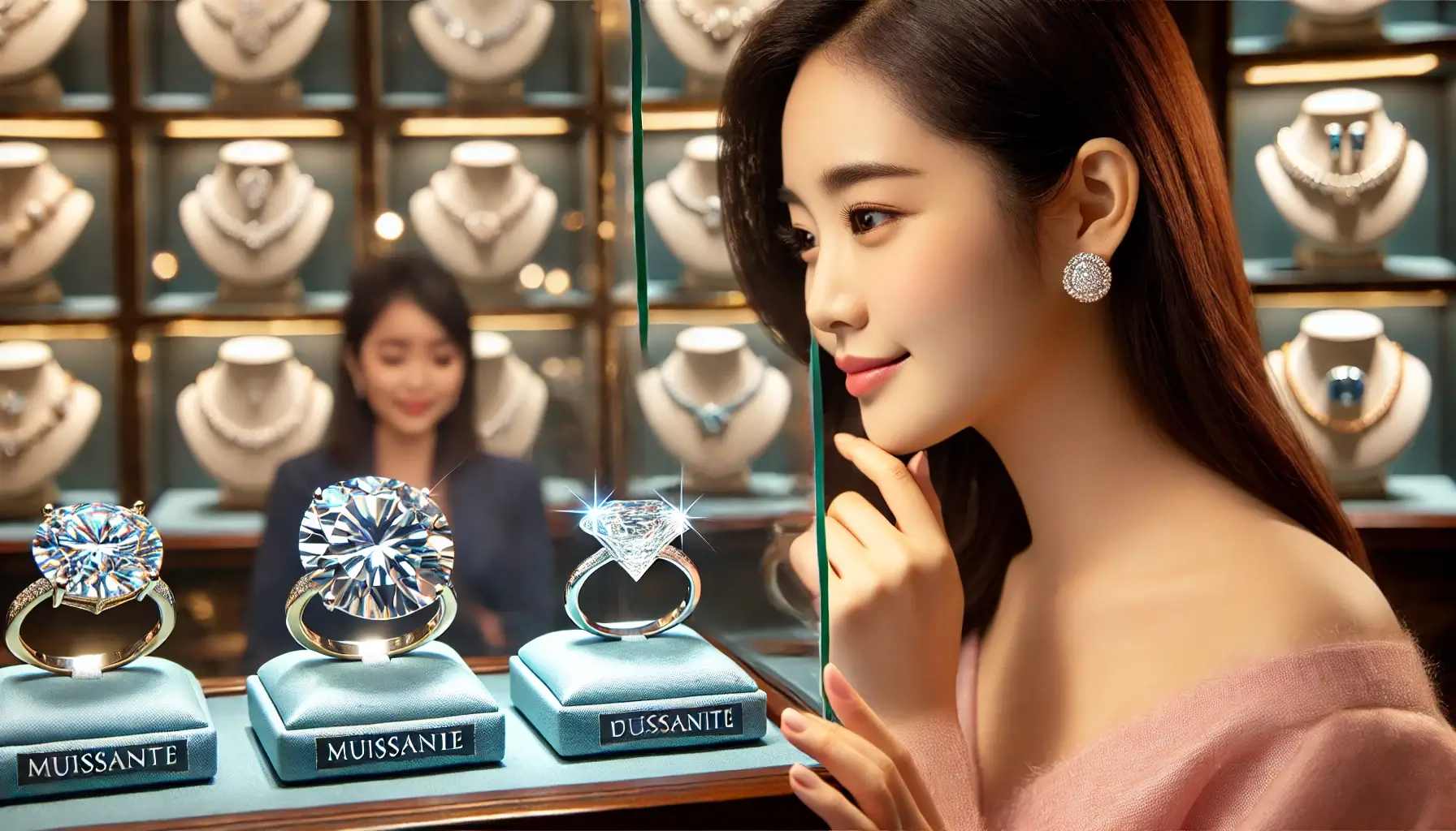 강렬한 반짝임을 선호한다면 모이사나이트가 더 적합할 수 있습니다.