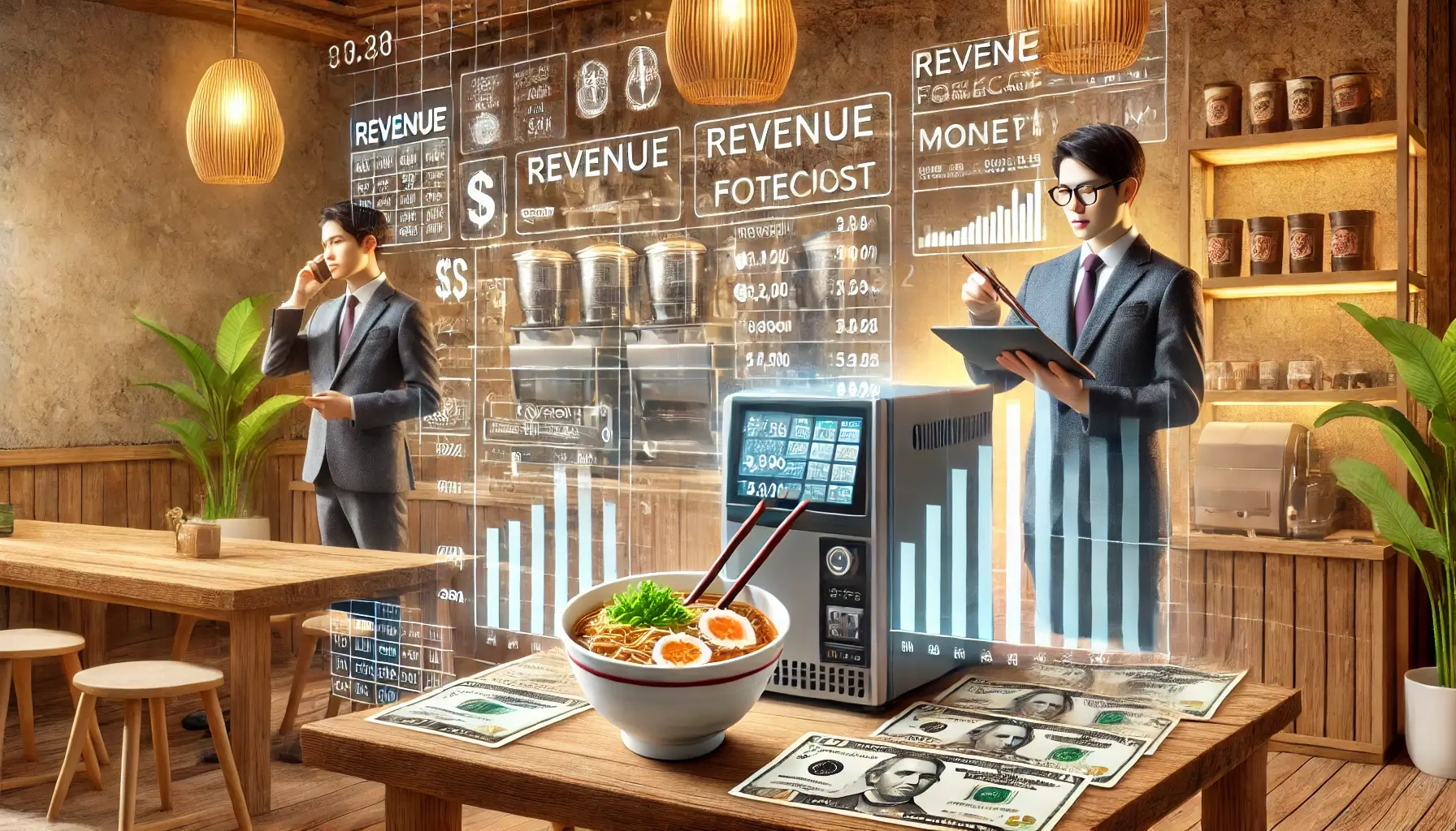 라면 한 그릇 가격을 3,500원으로 설정하고, 하루 평균 100그릇 판매를 목표로 잡았습니다.