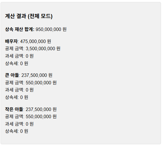- 정확한 자산 입력: 재산의 시장 평가액을 정확히 입력해야 결과가 신뢰할 수 있습니다.