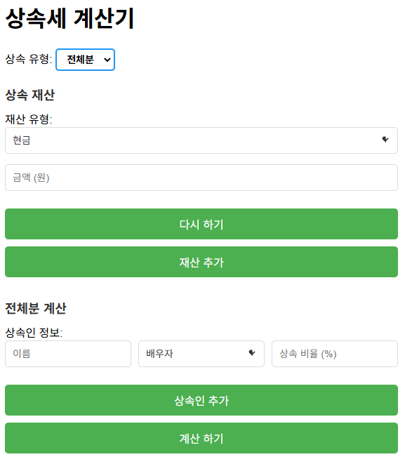 상속세계산기는 상속세 계산에 필요한 다양한 공제 항목과 자산 유형을 입력하면, 자동으로 상속세를 계산해주는 편리한 도구입니다. 이를 통해 복잡한 계산 과정을 간단히 처리할 수 있으며, 법적 공제 규정도 반영되어 신뢰할 수 있습니다.