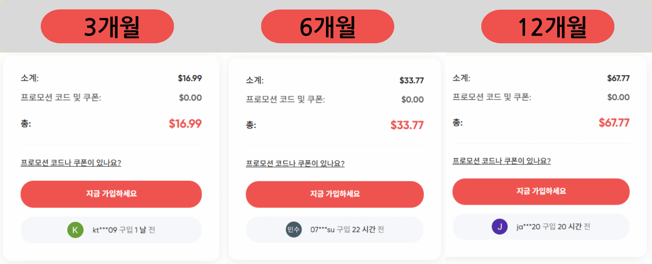 요금제가격 (USD)가격 (KRW)제공 기능